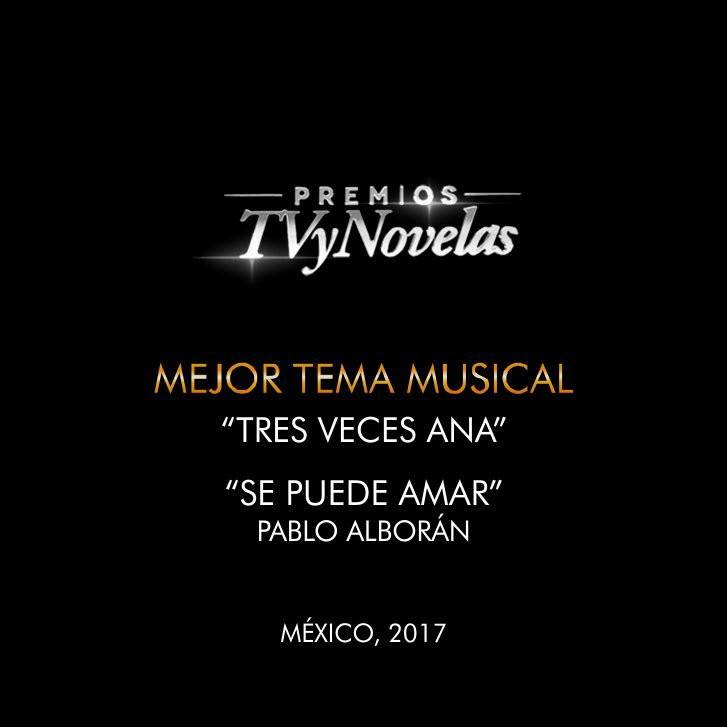 Anoche Pablo Alborán fue galardonado por votación popular con el premio a “Mejor tema musical” en la 35º entrega de los “Premios TV y Novelas” de México por la canción “Se puede amar”, tema principal de la telenovela “Tres veces Ana, tan iguales y tan distintas”.